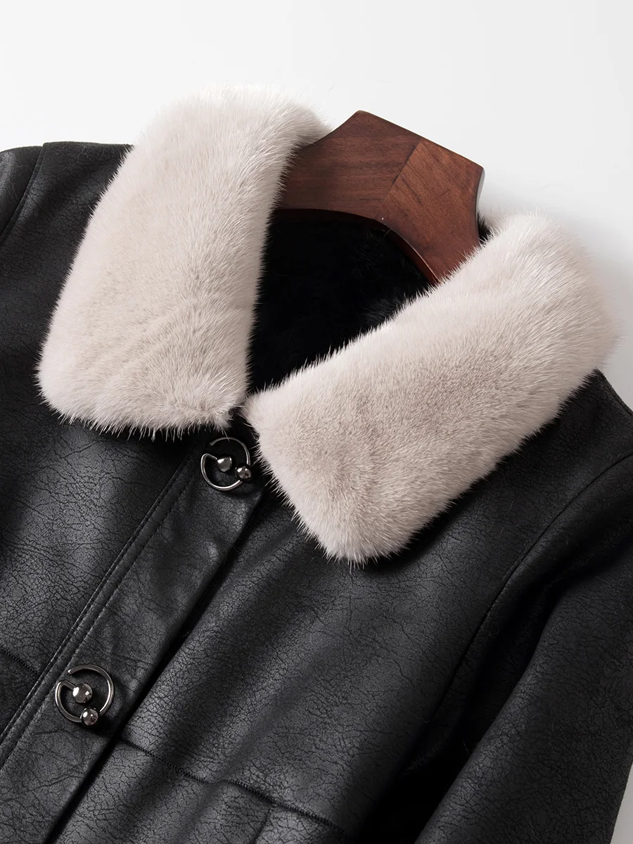 Product Name: Kaninchen Pelzmantel Natürliche Weibliche Lange Vintage Echt Nerz Pelz Kragen Lammfell Jacke Frauen Koreanische Doppel Konfrontiert Pelz Mäntel Tops 9454