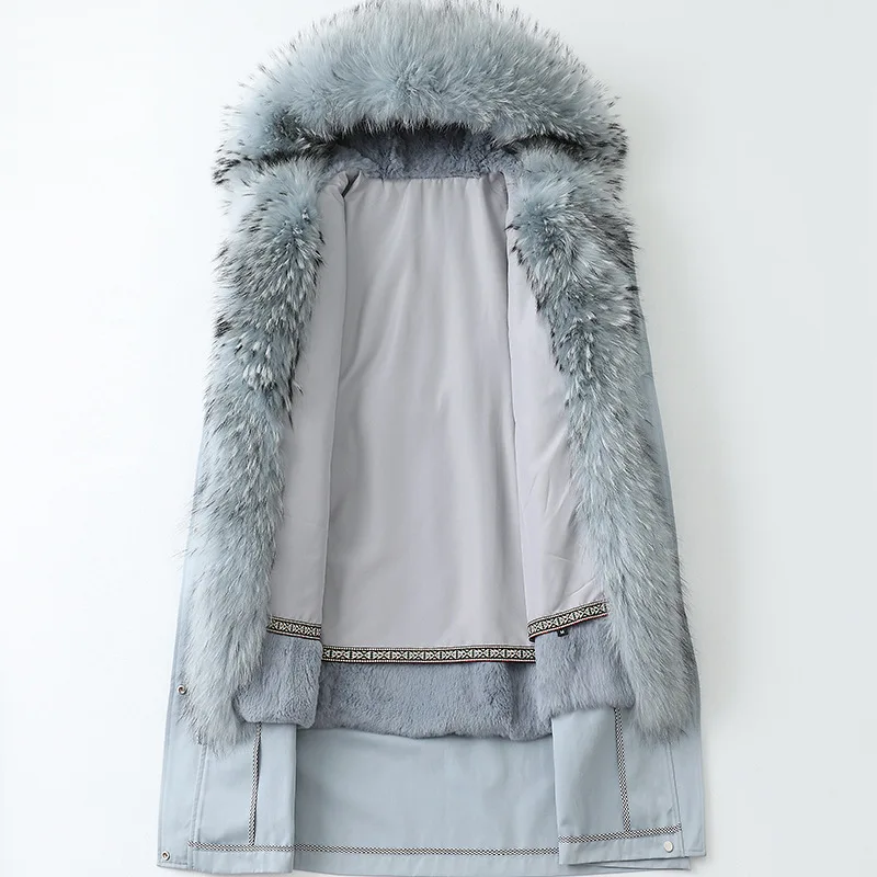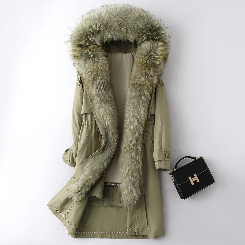 Product Name: Casual Verdicken Winter Pelz Schule Überwindet Mantel Kaninchen Haar Inneren Liner Waschbären Haar Pelz Kragen Abnehmbare Jacken Mäntel