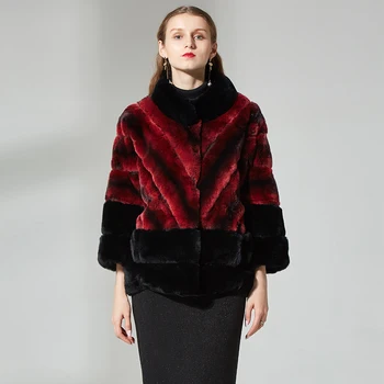 Product Name: Medium Lange Echt Rex Kaninchen Mantel Mit Stehkragen Herbst Winter Natur Pelz Jacke Mantel