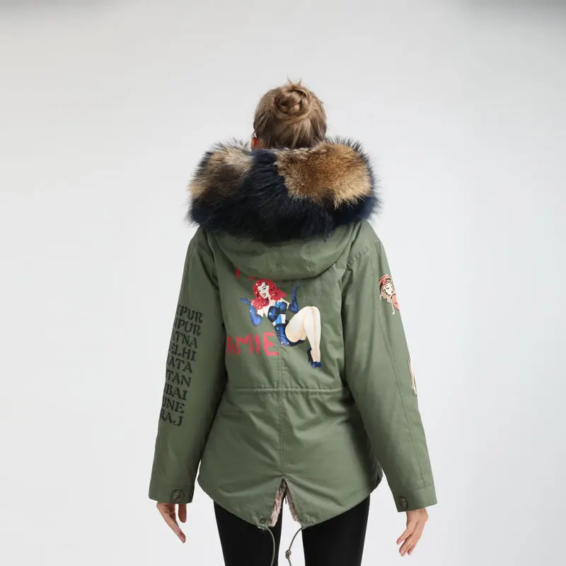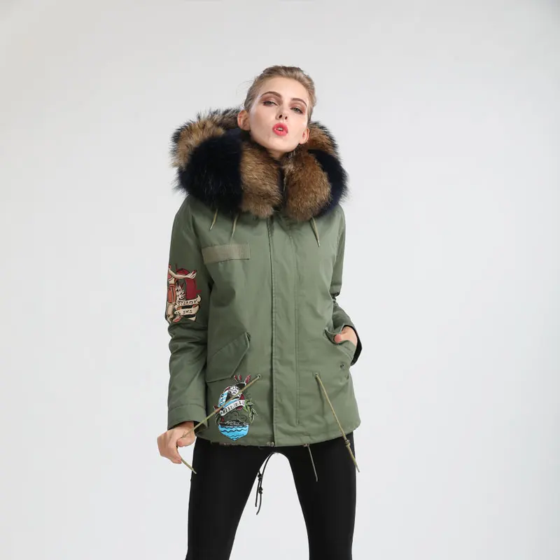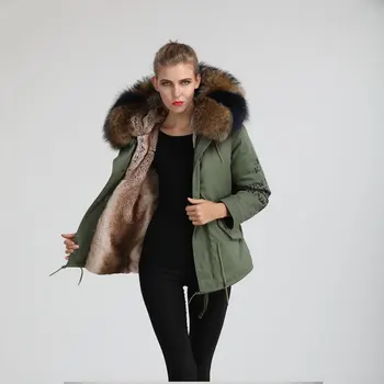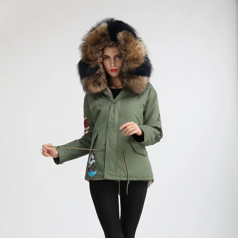 Product Name: Winter Frauen Kundenspezifische Natürliche Gefälschte Kaninchen Fell Bestickt Armee Grün Gnade Mantel