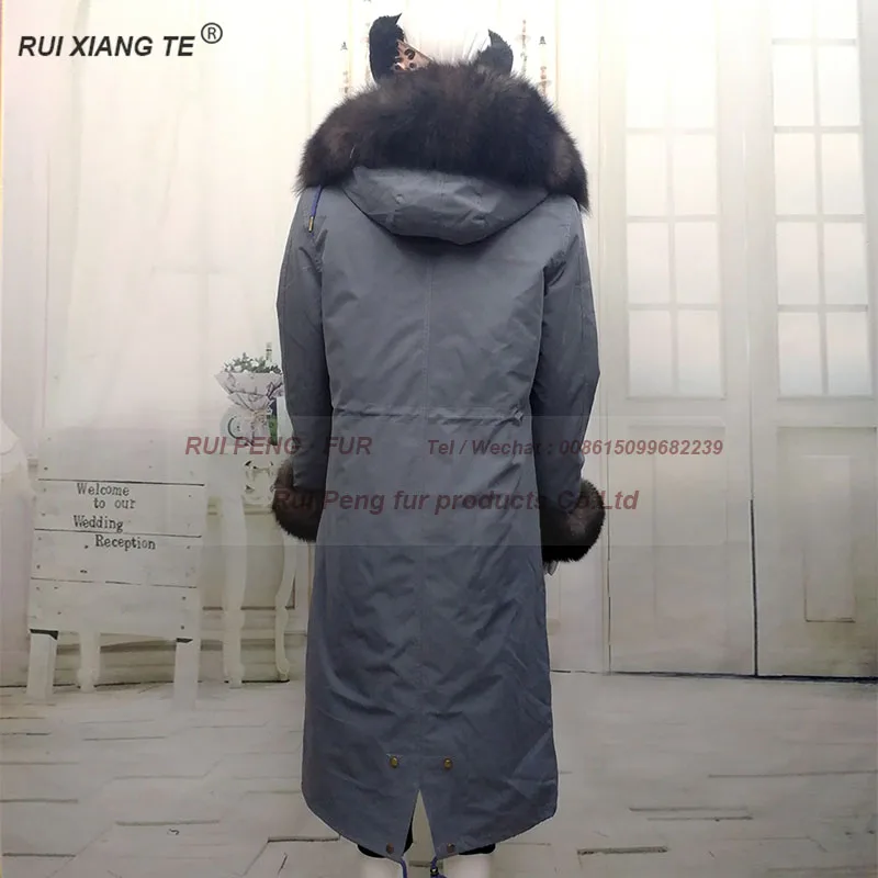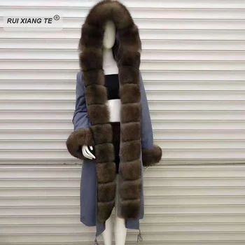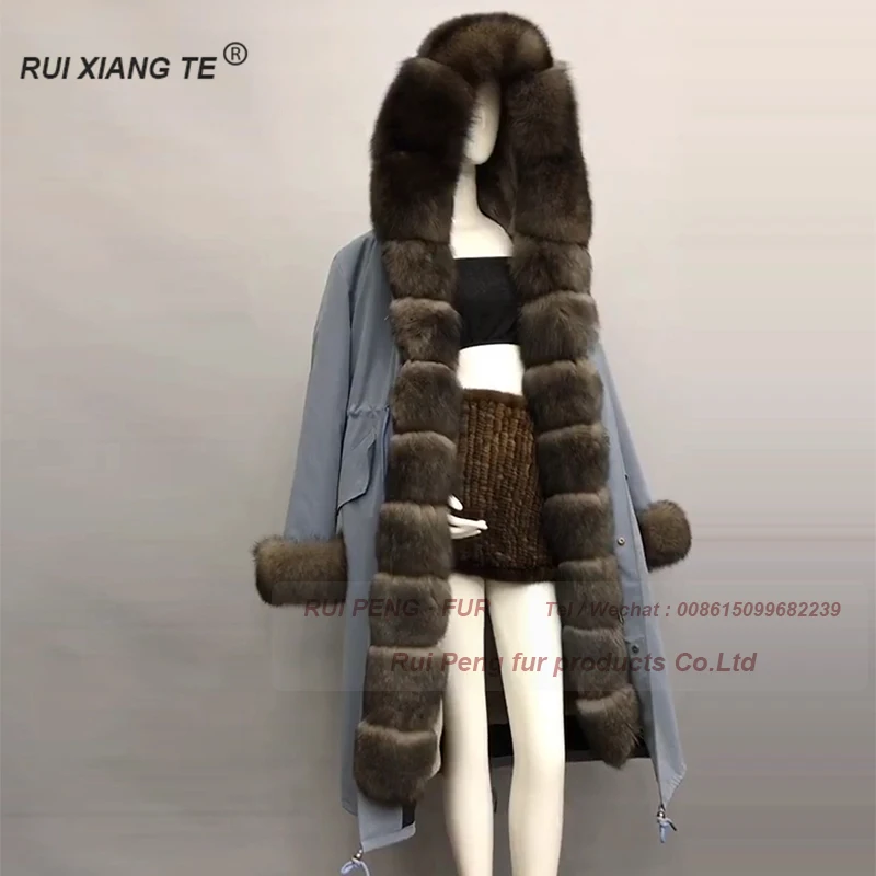 Product Name: Frauen Echt Pelzmantel Neue Marke Parka Mit Kapuze Natürliche Fuchs Pelz Mantel Futter Rex Kaninchen Demontieren Mit Großen Kragen Parka RuiXiangTe