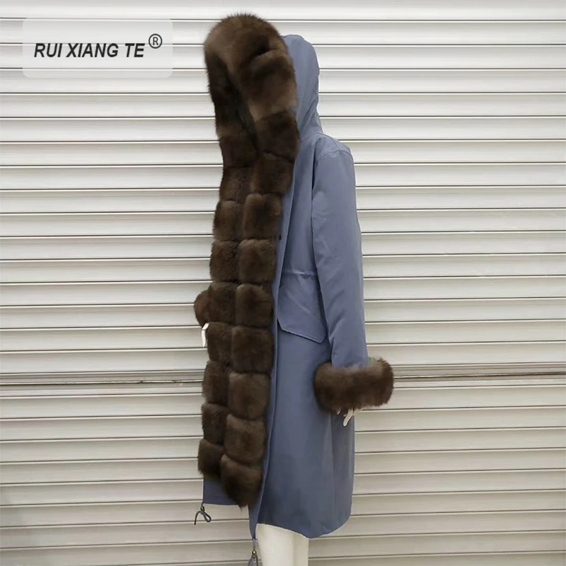 Special Offer Frauen Echt Pelzmantel Neue Marke Parka Mit Kapuze Natürliche Fuchs Pelz Mantel Futter Rex Kaninchen Demontieren Mit Großen Kragen Parka RuiXiangTe Discount 0% Today!