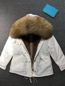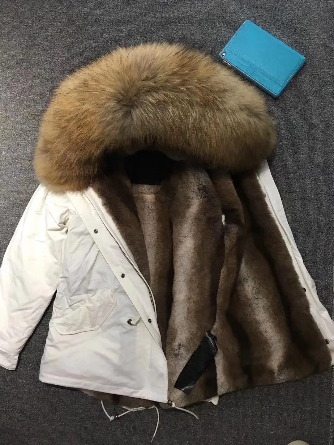 Product Name: MeiFng Kleidung Frauen Weiß Parka Mit Faux Rex Kaninchen Fell Winter Damen Mantel Lässig Kurze Mantel