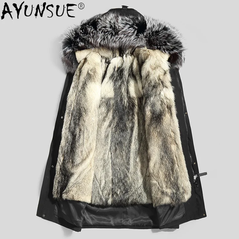Product Name: Winter Männer Mantel, Echt Kaninchen Rex Der Pelz Mantel, 100% Waschbären Pelz Hals Mantel, Schafe Der Schaffell Mantel, Tragen Lxr931