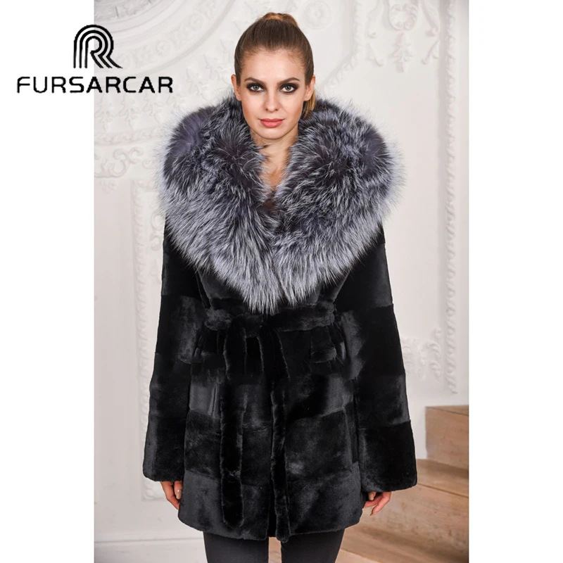 Special Offer FURSARCAR Winter Neue Ankunft Echt Pelzmantel Frauen Echte Rex Kaninchen Pelz Jacke Mit Silber Fuchs Pelz Kapuze Starke Warme Weiblichen Mantel Discount 30% Today!