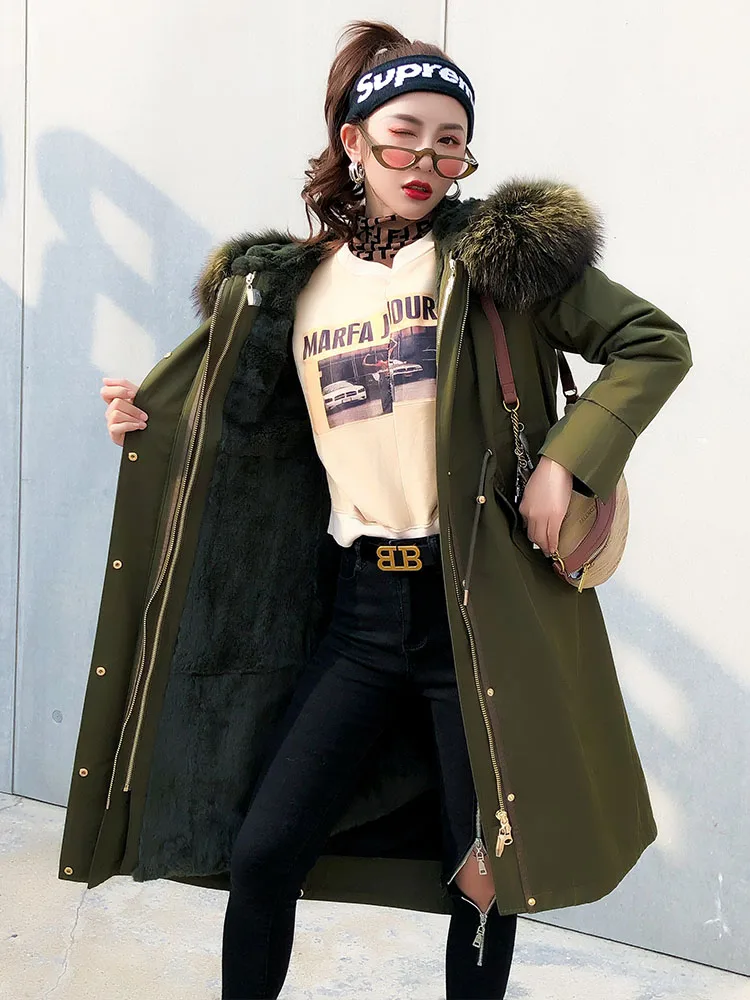 Special Offer Natürliche Liner Kaninchen Parka Kleidung 2020 Herbst Winter Jacke Frauen Waschbären Pelz Kragen Langen Graben Mantel MY3588 Discount 30% Today!