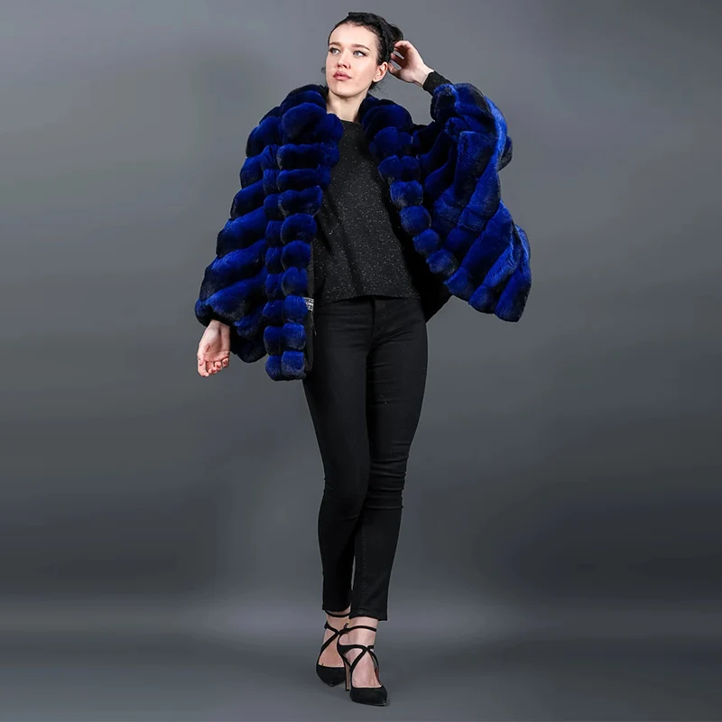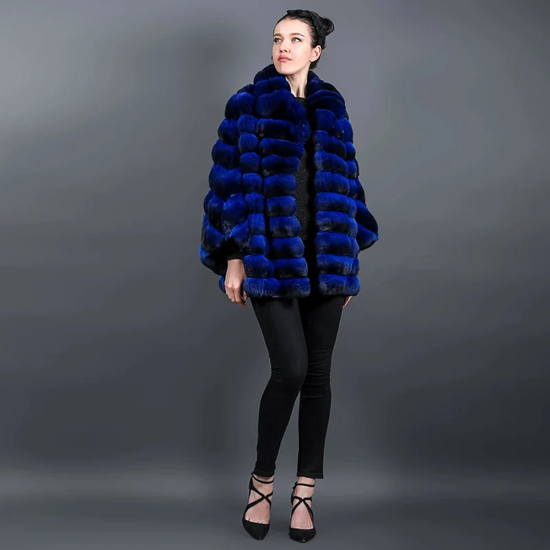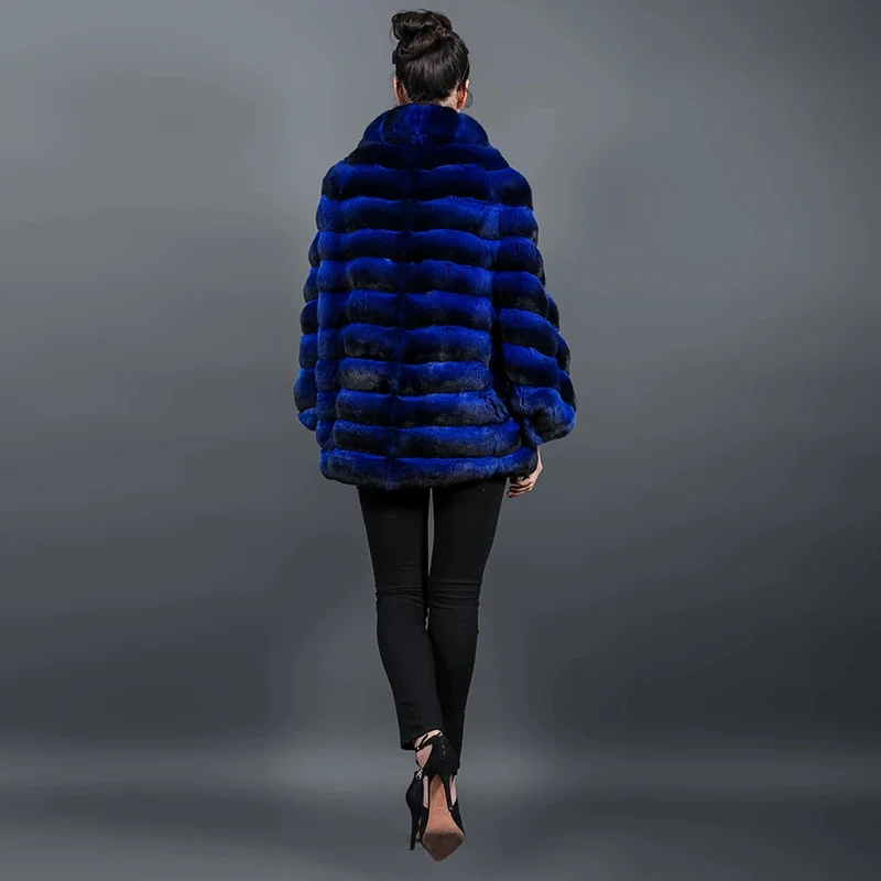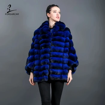 Special Offer FURSARCAR NEUE 2020 Luxury Real Rex Kaninchen Fell Mantel Winter Frauen Chinchilla Jacke 70cm Blau Farbe Natürliche Kaninchen Fell Outwear Discount 40% Today!