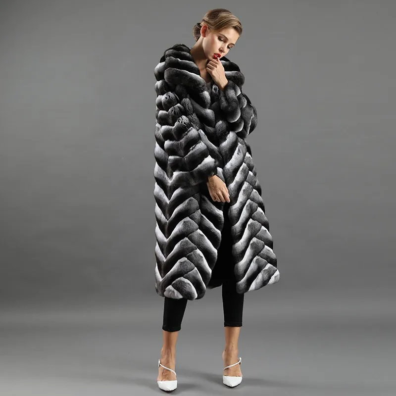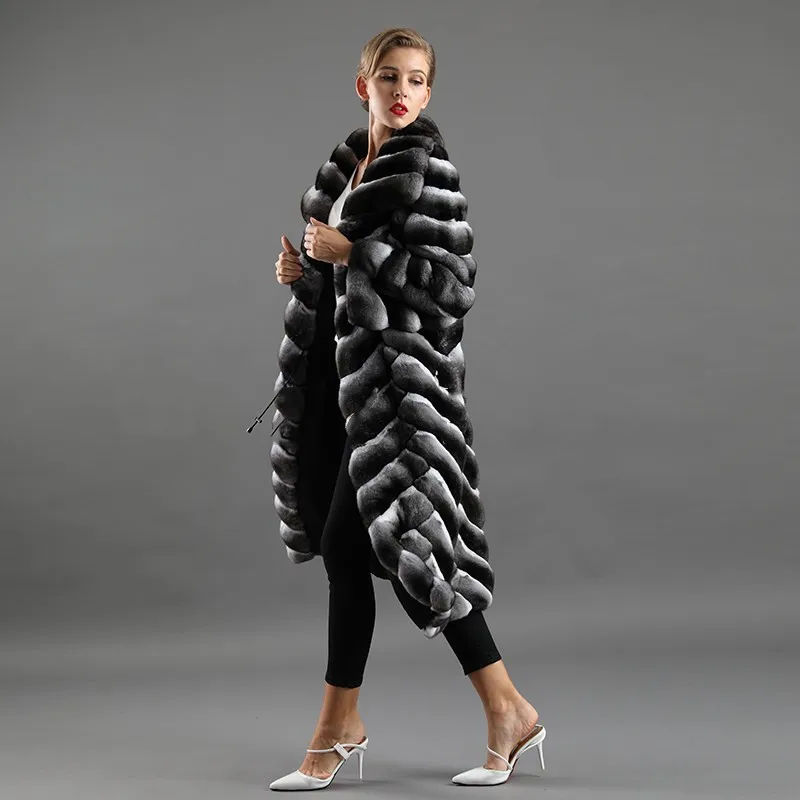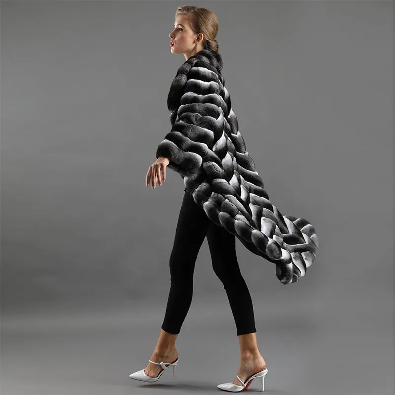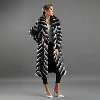 Product Name: FURSARCAR 2020 Neue Natürliche Rex Kaninchen Pelz Jacke Mit Turndown Kragen Winter Frauen Chinchilla 110cm X-Langen Mantel Pelz Outwear