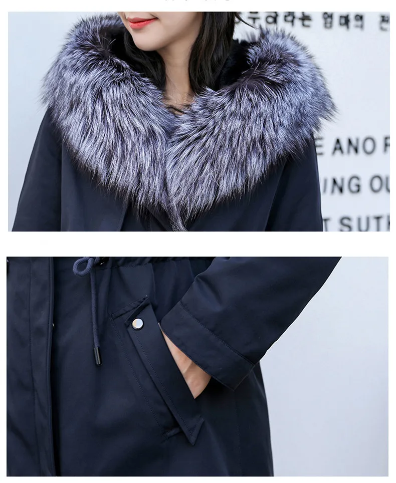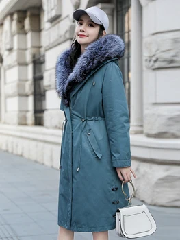 Product Name: Echt Parka 2020 Winter Jacke Frauen Natürliche Kaninchen Liner Langen Graben Mantel Weibliche Fuchs Pelz Kragen Mantel MY3546