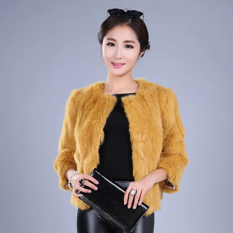 Product Name: Fell Kaninchen Faux Mantel Frauen Solide Mäntel Frauen Kurze Dicke Warme Oberbekleidung Weibliche Elegante Winter Dünne Rosa Pelzmantel WXF040 S S