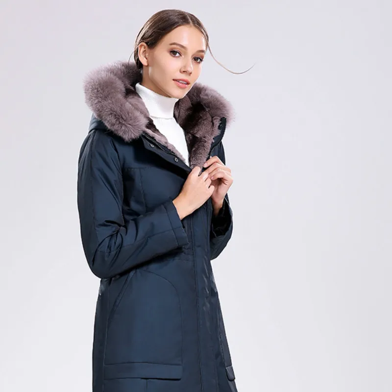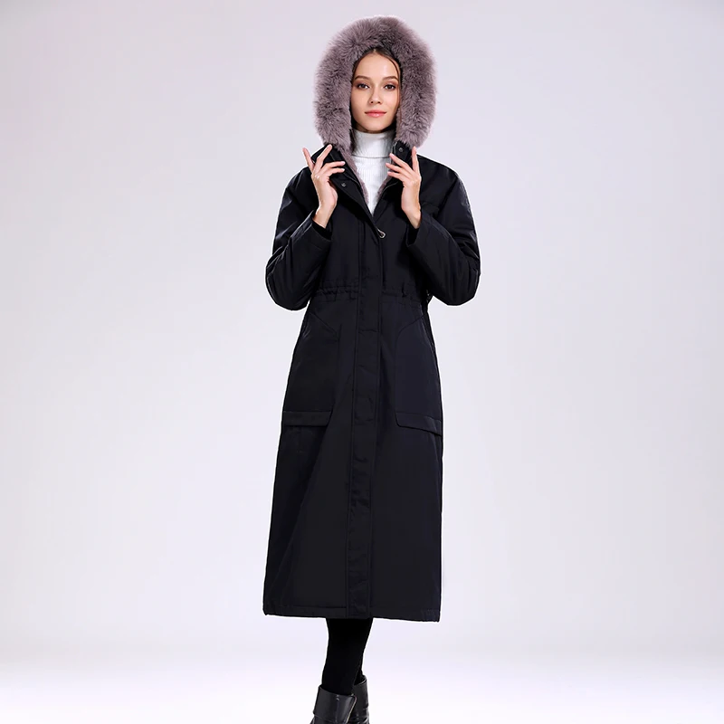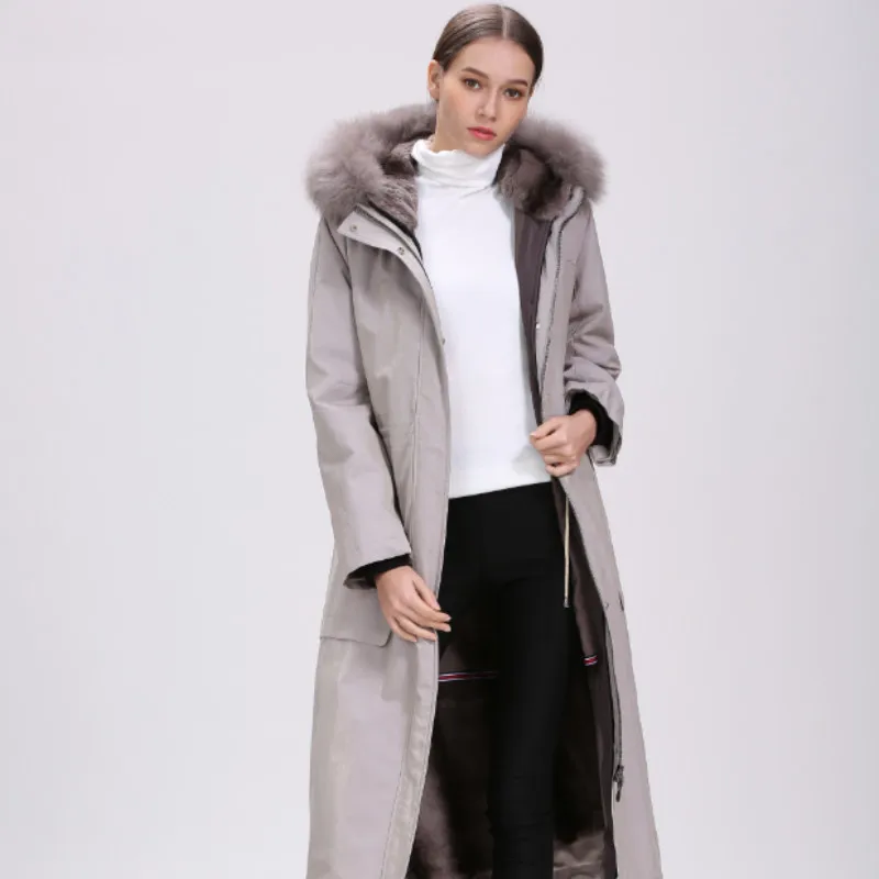 Product Name: Echt Pelzmantel Winter Jacke Warme Frauen Rex Kaninchen Pelz Liner Fuchs Pelz Kragen Mit Kapuze Parka Abrigos Mujer Invierno 2020 168 YY571