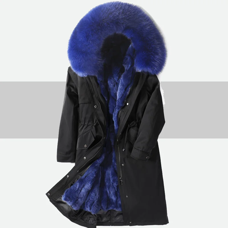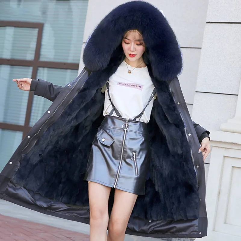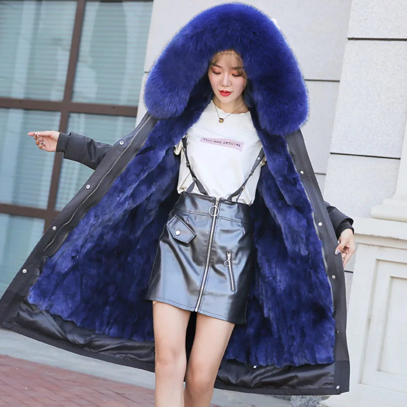 Product Name: 2019 Echt Pelzmantel Winter Jacke Frauen Lange Parka Große Natürliche Rex Kaninchen Pelz Liner Dicke Warme Echt Fuchs Pelz Kragen