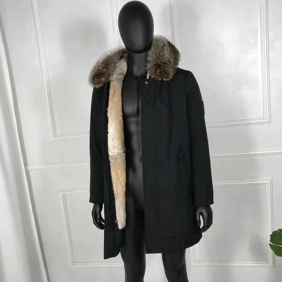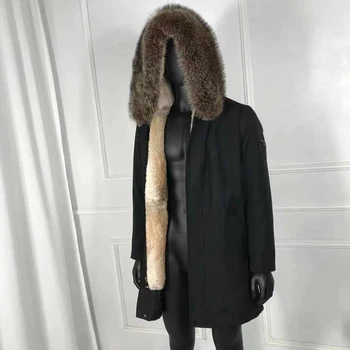 Product Name: Echt Pelz Parkas Winter Jacken Mit Kapuze Winddicht Männlichen Natürliche Kaninchen Pelz Liner Fox-Pelz-Kragen Mäntel Hohe Qualität Outwear