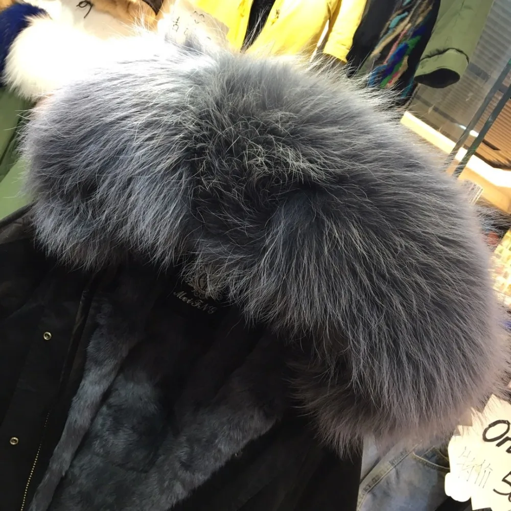 Special Offer 2018 Grau Rex Kaninchen Pelz Futter Große Kragen Damen Winter Schwarz Lange Shell Runway Warme Parka Echtpelz Mantel Discount 0% Today!