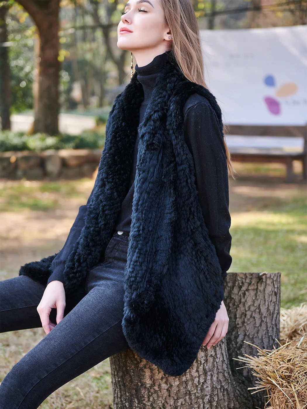 Special Offer Kerr Chinmo Elly Frauen Winter Weste Echtpelz Weste Kaninchen Fell Hand Gestrickte FREIES VERSCHIFFEN Discount 0% Today!
