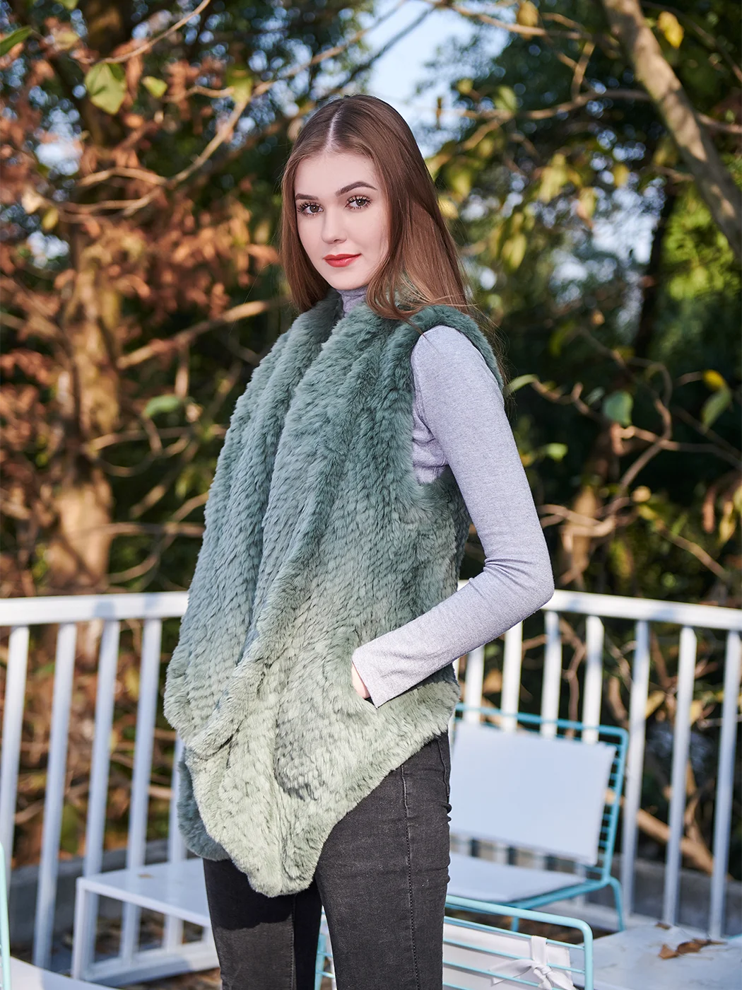 Product Name: Kerr Chinmo Elly Frauen Winter Weste Echtpelz Weste Kaninchen Fell Hand Gestrickte FREIES VERSCHIFFEN