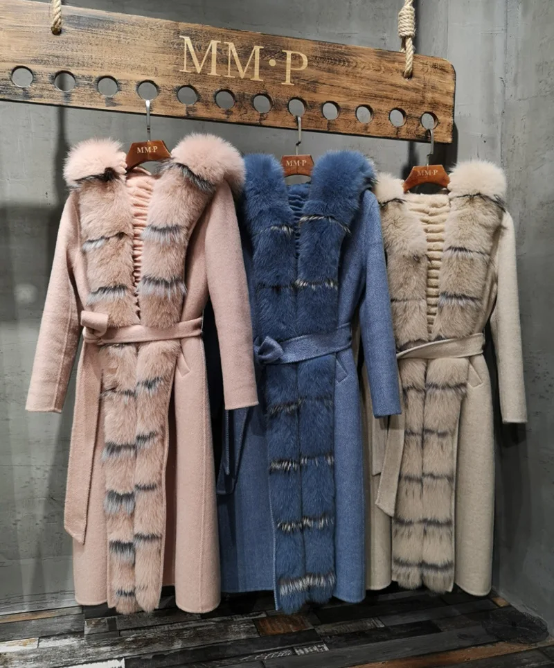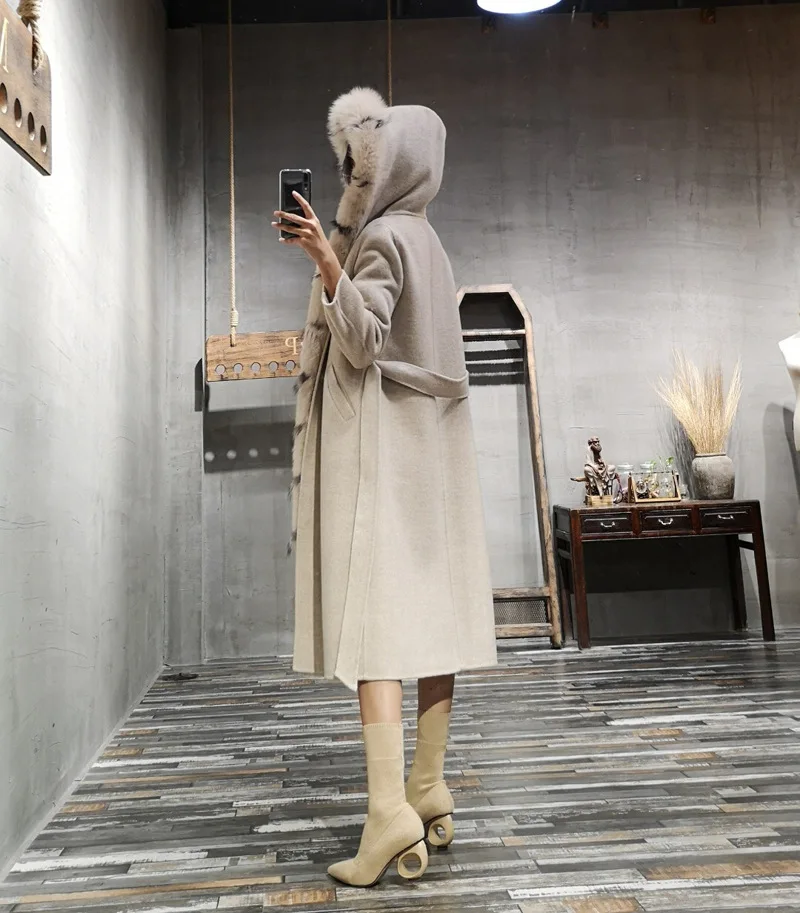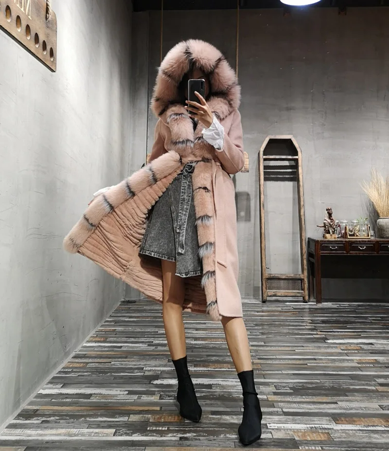 Product Name: QIUSHAN Doppel Konfrontiert Kaschmir Frau Mantel FĂŒr Herbst Oder Winter Rex Kaninchen Fell Futter Fuchs Pelz Trimmen Lange Mit Kapuze Jacke