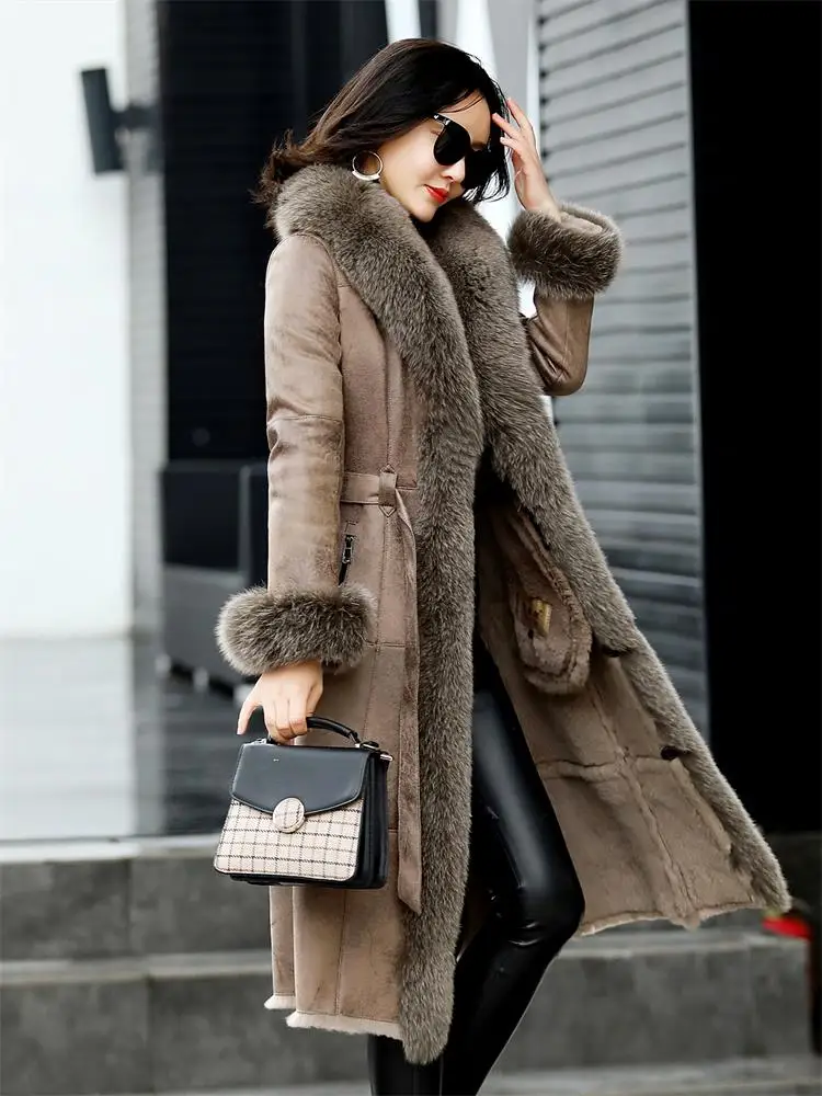 Special Offer Neue Kommende Extra Komfortable Fuchs Kragen Kaninchen Pelz Leder Frau Mantel Lose Warme Casual Oversize Top QualitÀt Frauen Winter Mantel Discount 30% Today!