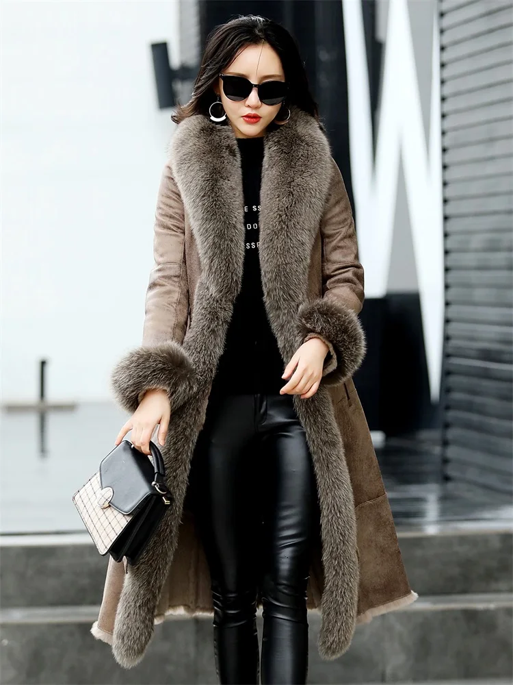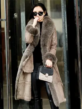 Product Name: Neue Kommende Extra Komfortable Fuchs Kragen Kaninchen Pelz Leder Frau Mantel Lose Warme Casual Oversize Top QualitÀt Frauen Winter Mantel