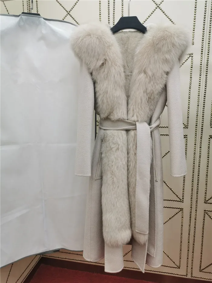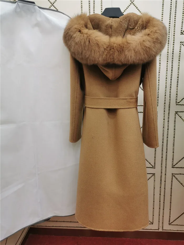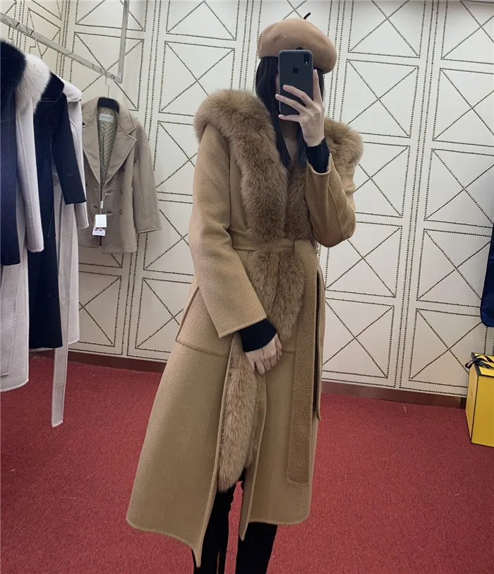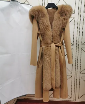 Product Name: Hohe Qualität Kaschmir Wolle Mantel Frauen Langen Mantel Weibliche Natürliche Echt Fox Pelz Kragen Abnehmbare Kaninchen Pelz Liner Winter Jacke