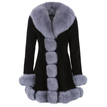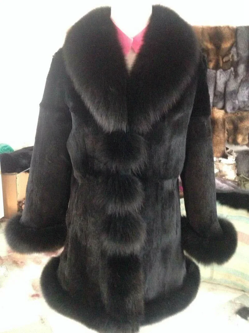 Product Name: Luxus Echt Rex Kaninchenfell Mantel Jacke Fuchspelz Kragen Manschette Rand Herbst Winter-frauen-pelz-überwürfe Mäntel Plus Größe 4XL 5XL VF4054
