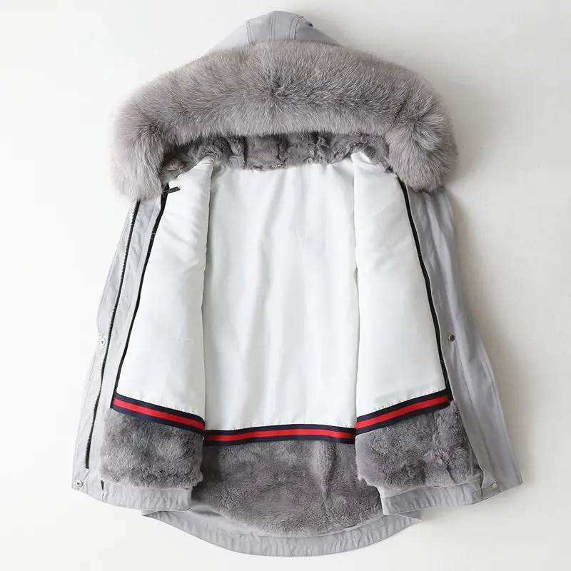 Special Offer Luxus Winter Parka Mantel Jacke Fuchs Pelz Hoody Rex Kaninchen Futter Frauen Warme Oberbekleidung MĂ€ntel LF2095 Discount 47% Today!