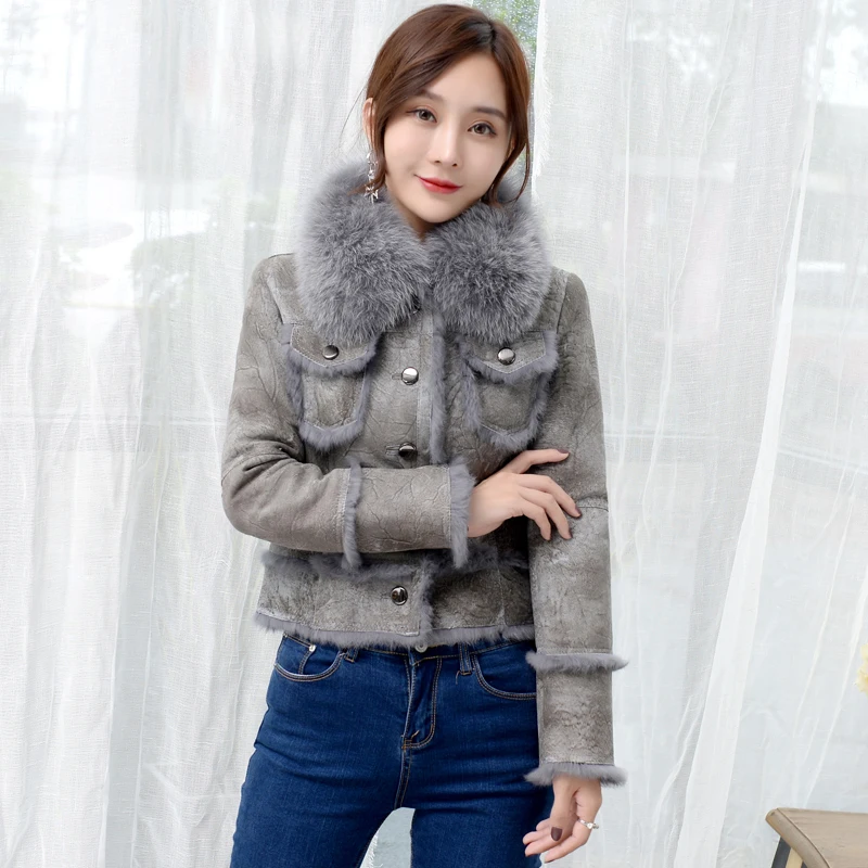 Product Name: AYUNSUE Doppelseitigen Pelzmantel Weibliche Fuchs Pelz Kragen Natürliche Kaninchen Pelz Mäntel 2020 Winter Jacke Frauen Aus Echtem Leder Jacke MEIN