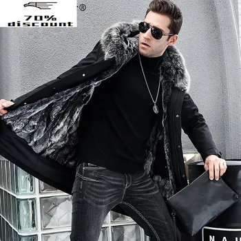 Special Offer Männer Echtpelz Parka Winter Jacke Männer Natürliche Rex Kaninchen Pelz Liner Langen Mantel Fuchs Pelz Kragen Parkas Hombre 82884 KJ2033 Discount 70% Today!