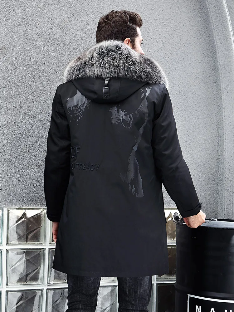 Product Name: Männer Echtpelz Parka Winter Jacke Männer Natürliche Rex Kaninchen Pelz Liner Langen Mantel Fuchs Pelz Kragen Parkas Hombre 82884 KJ2033