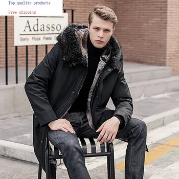 Product Name: Parka Männer Winter Gans Unten Jacke Echt Kaninchen Pelz Mantel Mit Kapuze Waschbären Pelz Kragen Warme Parkas Männer 2020 1916 KJ3112