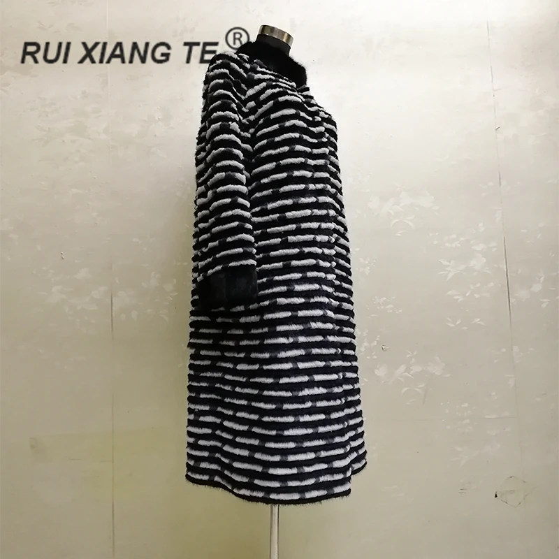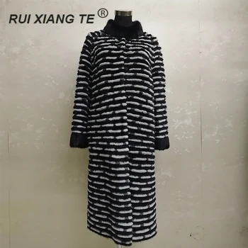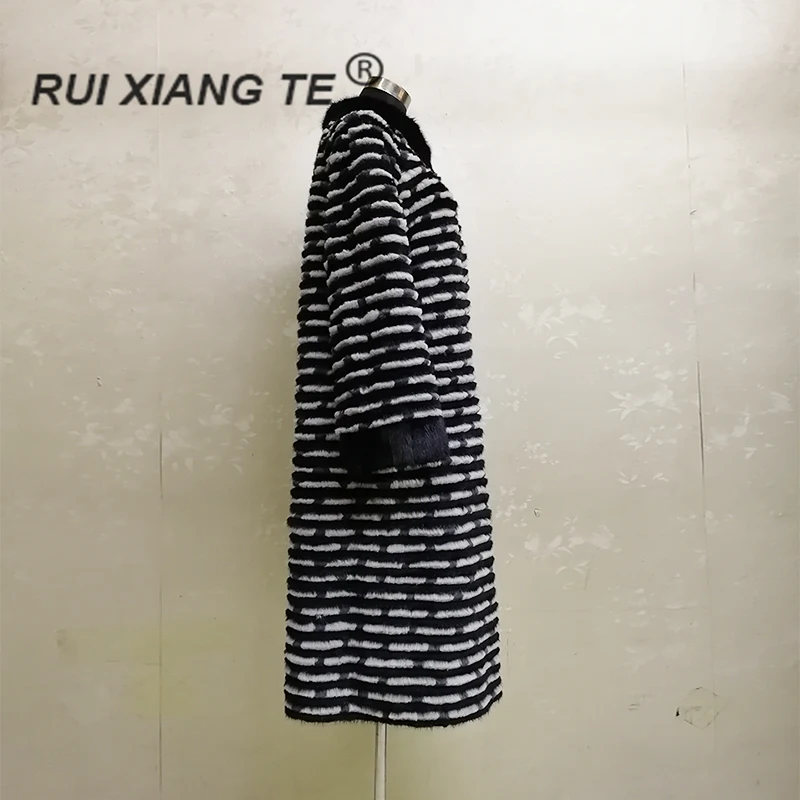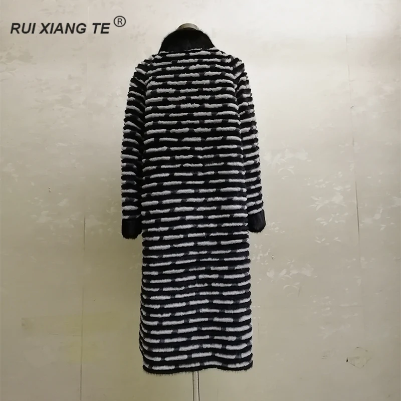 Product Name: Frauen Echt Pelzmantel Echt Nerz Streifen Genäht Toghter Mantel Natürliche Pelz Warme Winter Jacken Breite Taille Mantel Manschette Nerz Mit Kragen