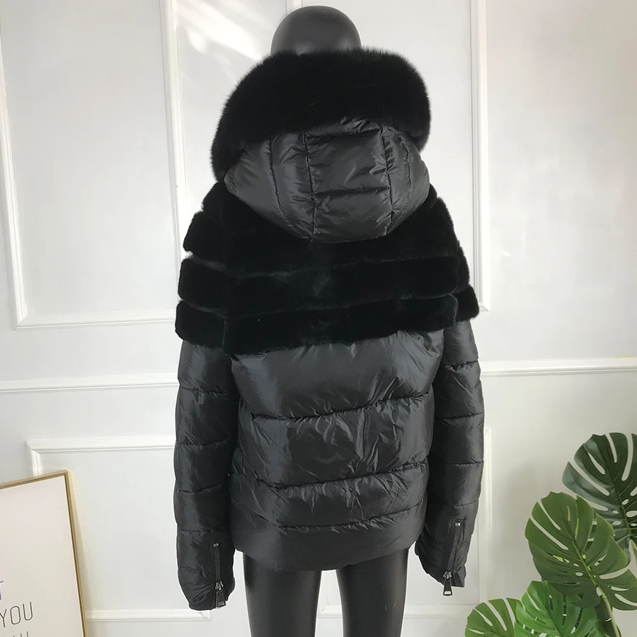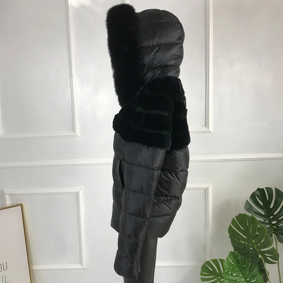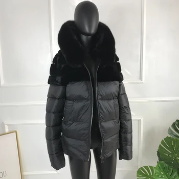 Product Name: Winter Mantel Mit Kapuze Kaninchen Pelz Jacke Fuchs Pelz Kragen 2020 Frauen Neue Mode Warme Oberbekleidung