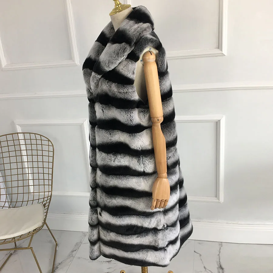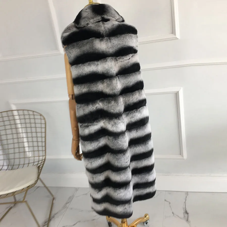 Special Offer Frauen Hohe Qualität 100% Echte Rex Kaninchen Pelz Chinchilla Farbe Winter Weste Drehen Unten Kragen Echt X-LONG Rex Kaninchen Pelz Weste Discount 0% Today!