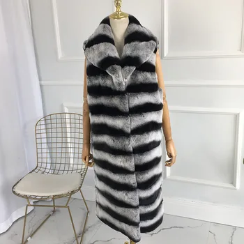Product Name: Frauen Hohe Qualität 100% Echte Rex Kaninchen Pelz Chinchilla Farbe Winter Weste Drehen Unten Kragen Echt X-LONG Rex Kaninchen Pelz Weste