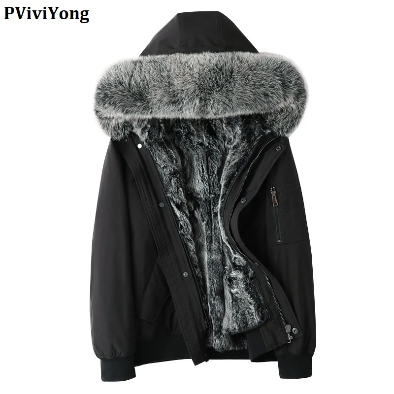Product Name: PViviYong 2020 Winter Hohe Qualität Echt Leder Jacke Männer, Fuchs Kragen Kaninchen Liner Parka Mode Männer Kleidung P19818
