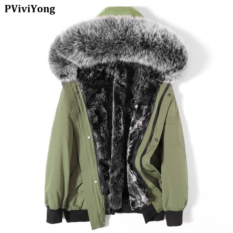 Special Offer PViviYong 2020 Winter Hohe Qualität Echt Leder Jacke Männer, Fuchs Kragen Kaninchen Liner Parka Mode Männer Kleidung P19818 Discount 0% Today!